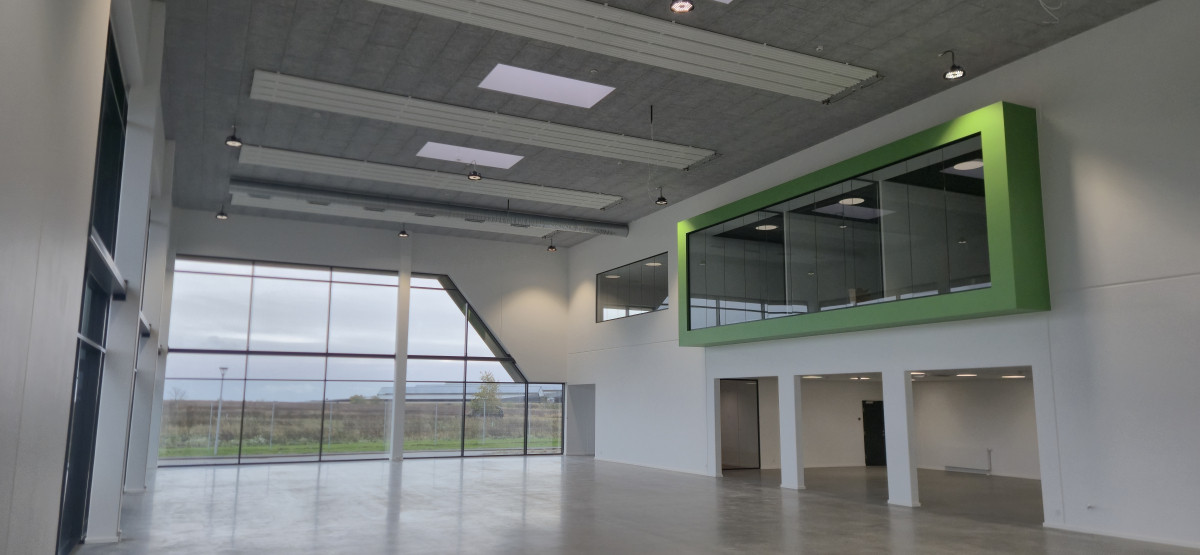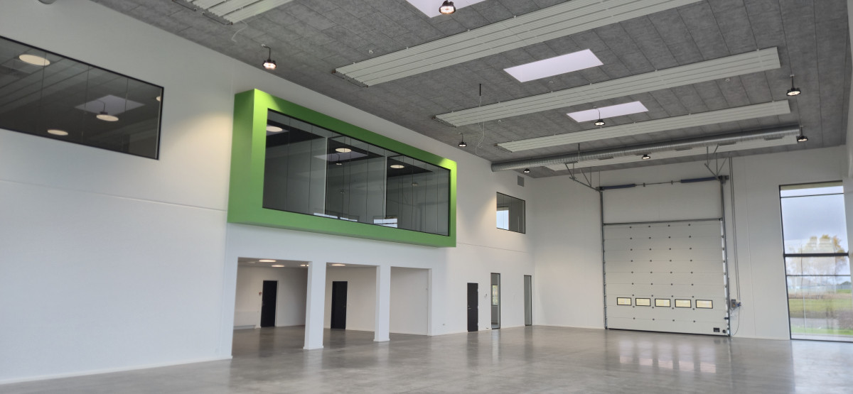 Det nye byggeri er opført i totalentreprisepartnering med Selfinvest og rummer i alt 2.950 m² med showroom, kontorer, velfærds- og mødefaciliteter. Hertil kommer ca. 1.900 m² lager og ca. 10.000 m² udendørs oplagsarealer.