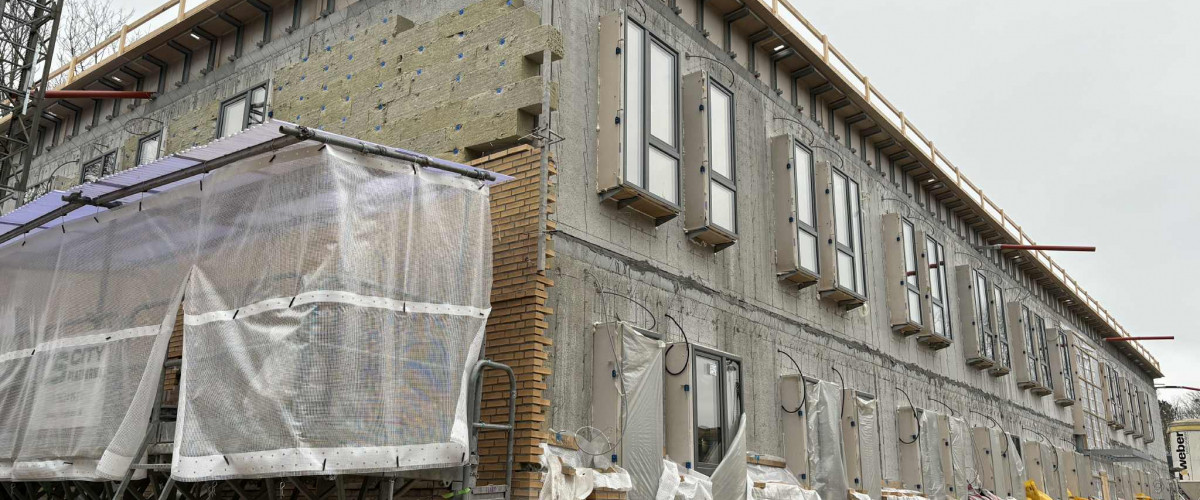 Bygningskonstruktørstuderende i praktik på ny tandklinik i Holbæk.