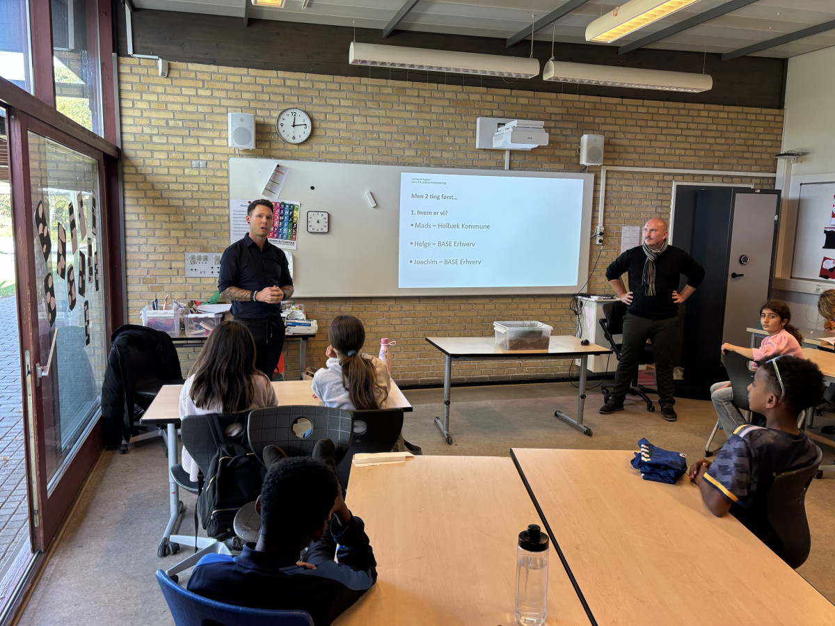 Det fik 6. klasse på Bjergmarksskolen i Holbæk lov at opleve på første hånd, da vi sammen med Mads Nielsen, bygherre fra Holbæk Kommune, inviterede dem indenfor i byggeprocessen på den nye tandklinik, som vi opfører lige ved deres skole.
