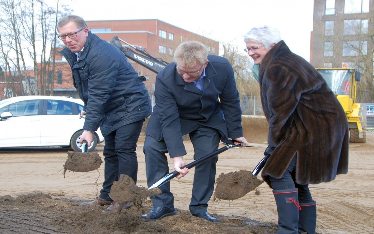 -Vi er ved at få lavet salgsmaterialet nu, og ejerboligerne bliver om kort tid udbudt til salg, sagde adm. dir., CEO Anton Nørgaard, Dansk Boligbyg a/s inden han sammen med NRGi´s bestyrelsesformand og borgmesteren tog det første spadestik på 1. etape af projektet, hvor der endnu ikke er sat en startdato på 2. etape hen mod Adventskirken på hjørnet af Lichtenbergsgade og Bygholm Parkvej.