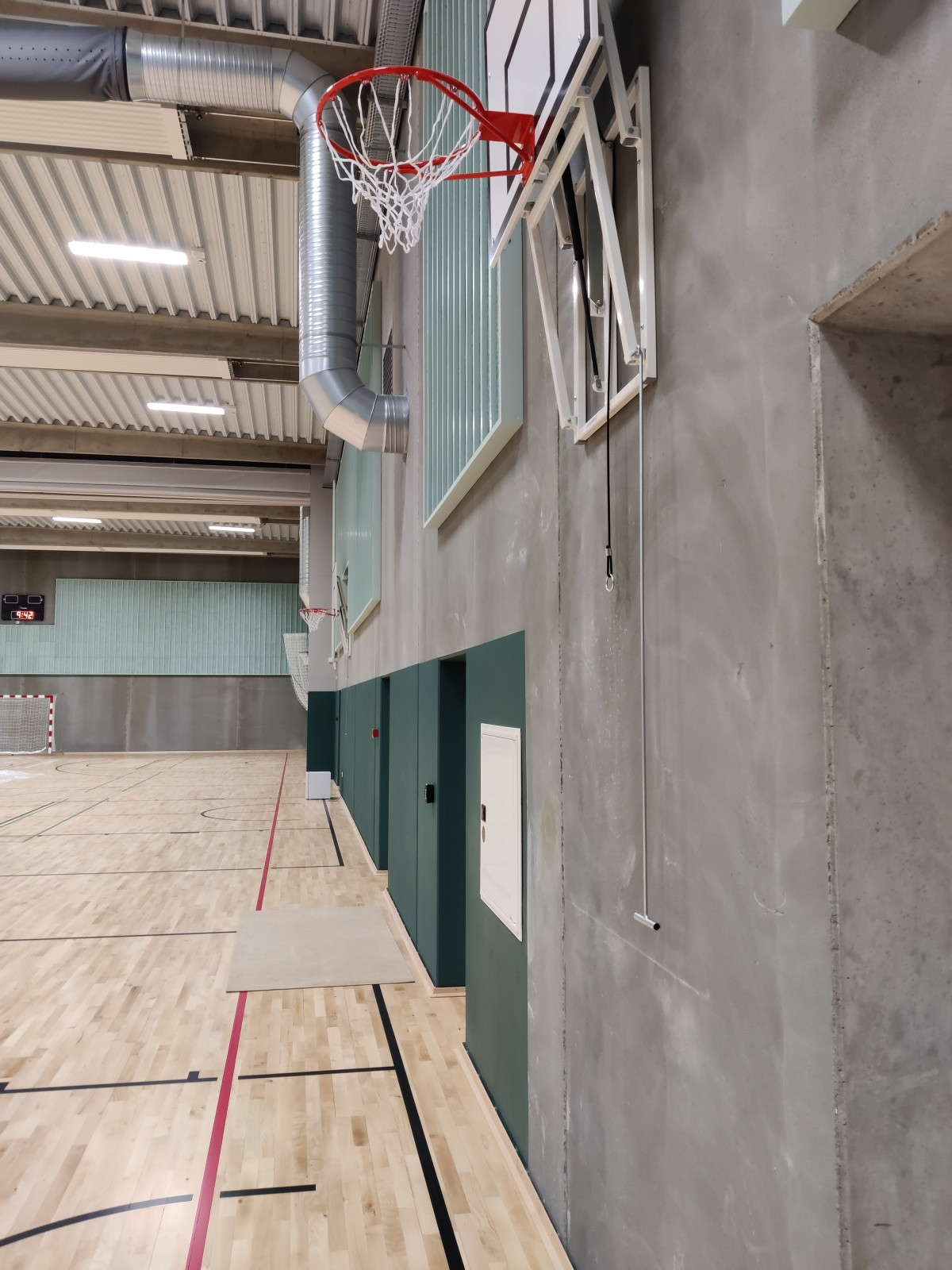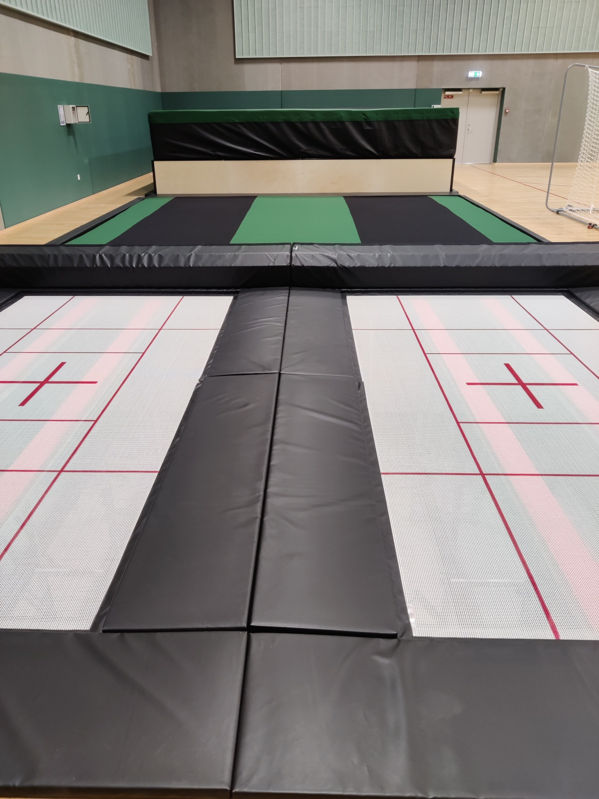 Den nye bygning på Højvangsallé er en udvidelse af den eksisterende hal og omfatter opførelse af ny sportshal, med tilhørende springgrav og trampolin.