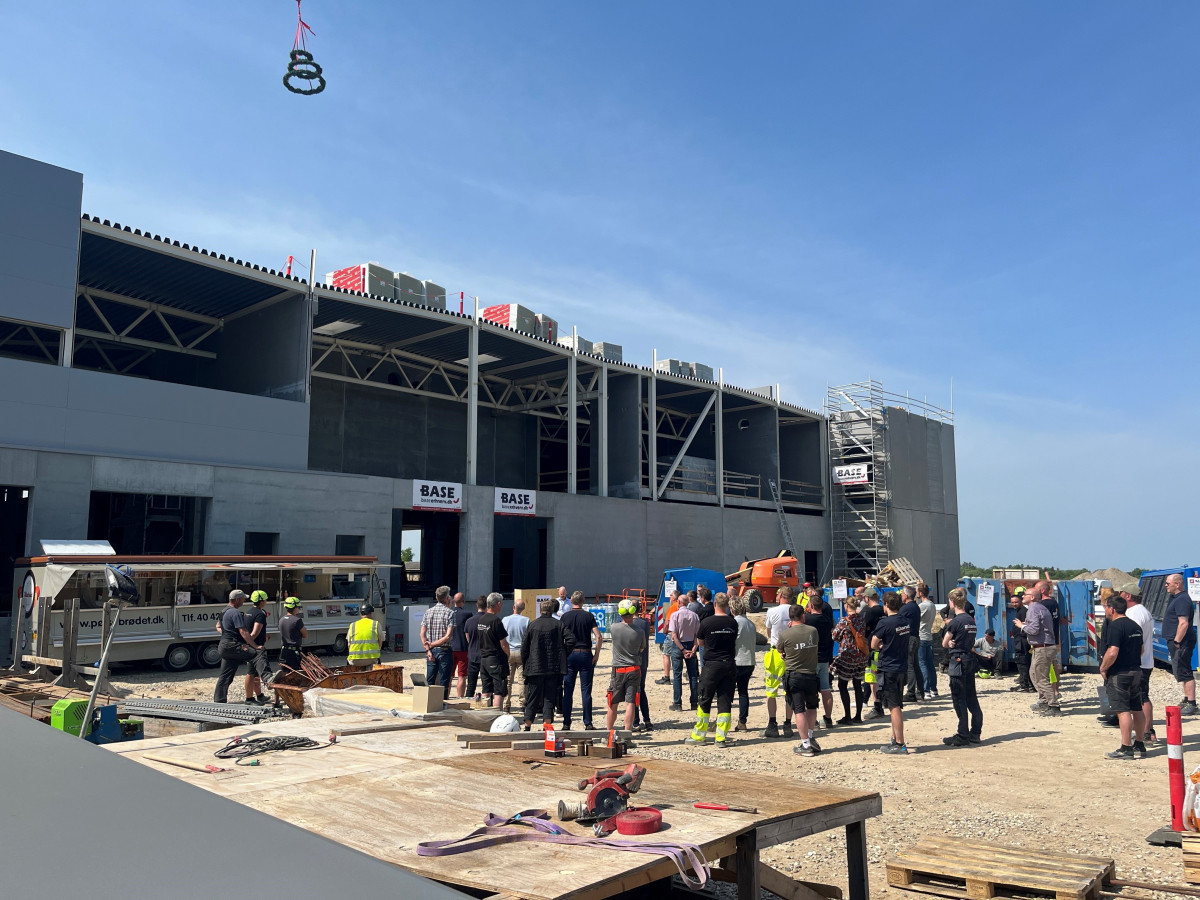 BASE Erhvervs regionsdirektør, Rasmus Mørk, holdt en inspirerende tale, hvor han takkede alle involverede parter, fra bygherrer, entreprenører, arkitekter og ingeniører til de dygtige håndværkere, der dagligt bidrager til byggeriets succes.