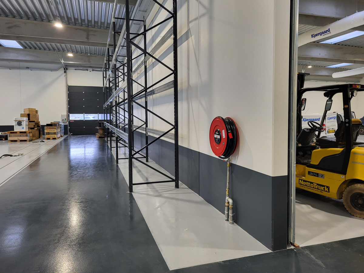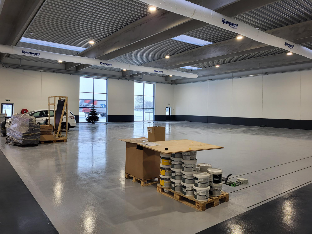 Med den stigende efterspørgsel efter Kjærgaards innovative løsninger opstod der behov for større arbejds- og lagerplads. Kjærgaard besluttede derfor at få bygget en ny lagerhal.
