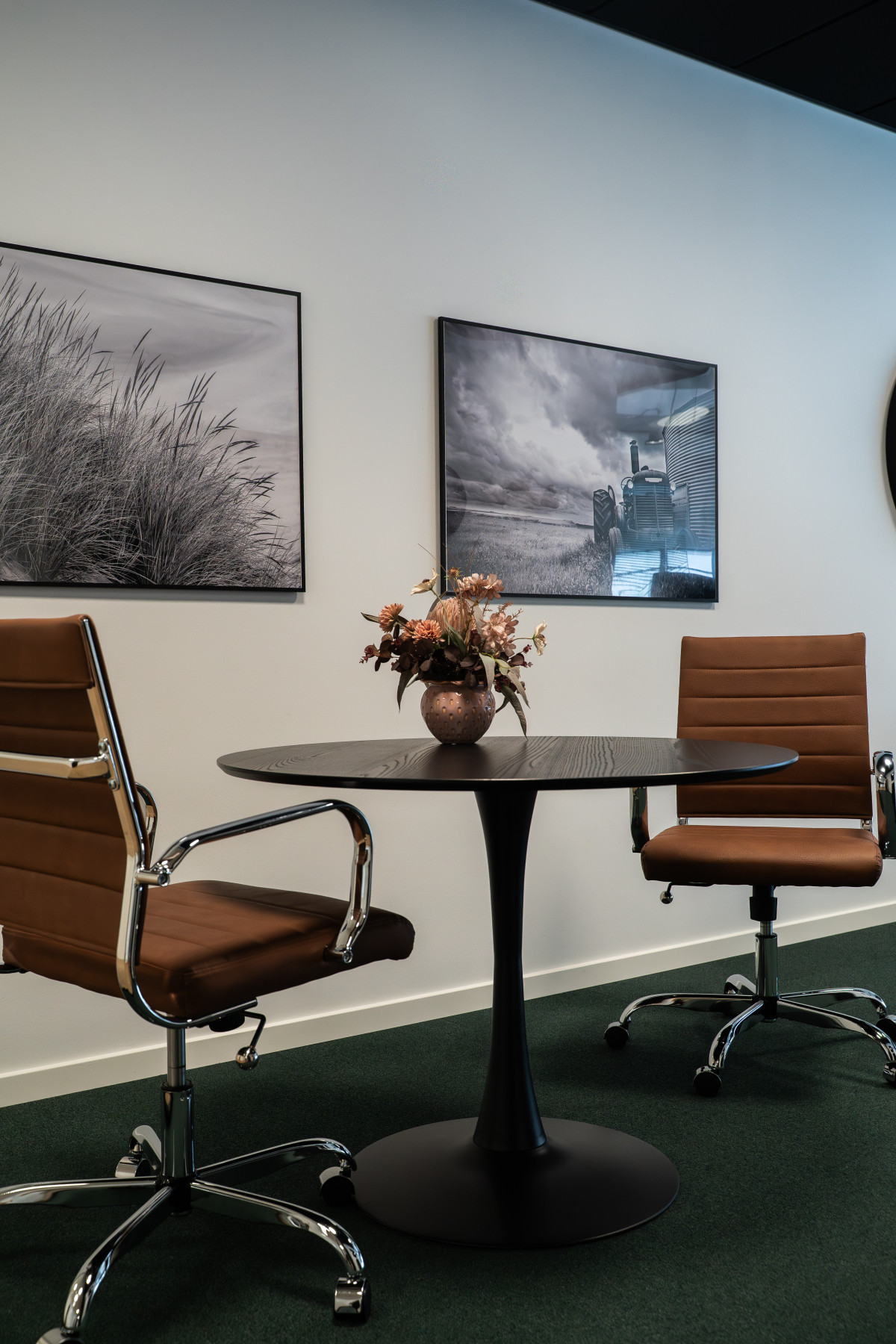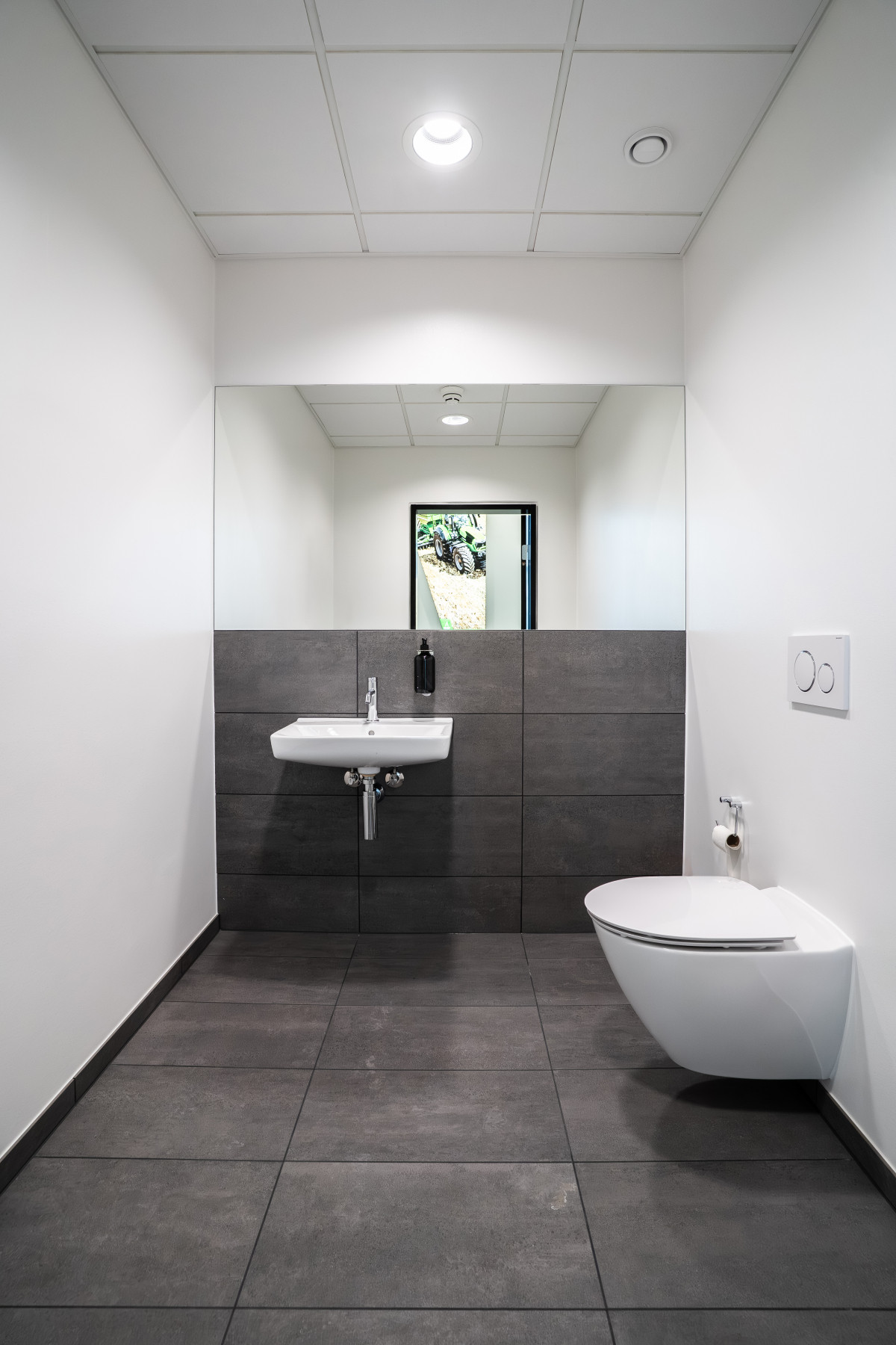 I domicilet udføres glasvægge ved kontorer, møderum og salgskontor, så der skabes gennemsigtighed mellem administration og showroom. Showroomet er en central del af byggeriet og udstyres med et stort glasparti, der vender ud mod motorvejen. Facaderne opføres i betonsandwichelementer i glat grå, iblandet hvid cement for en lysere farve.