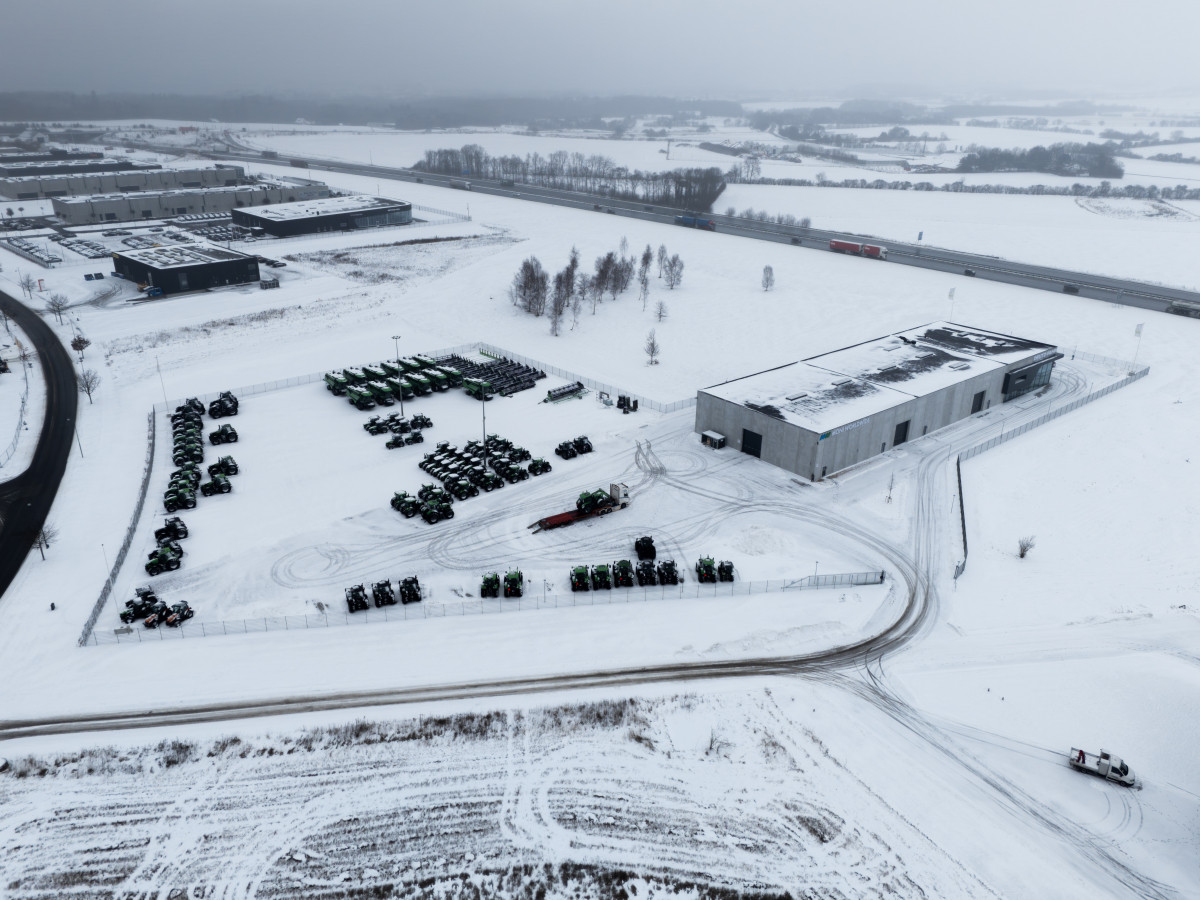 Udenfor etableres oplagsarealer, både belagte og grusarealer, til oplag af landbrugsmaskiner. Der etableres personale- og gæsteparkering mod motorvejen, hvor der også opstilles to dobbeltstandere til opladning af elbiler.
