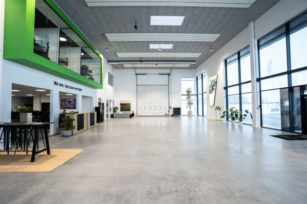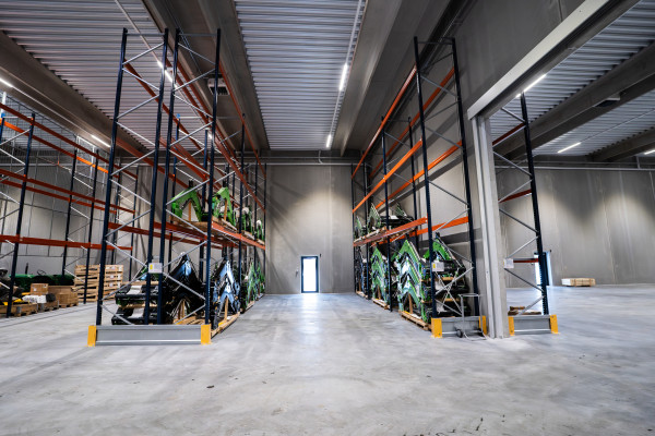 På en grund på 24.300 m2 opfører vi et nyt domicil, som bl.a. vil omfatte 10.000 m2 til oplagsplads og en bygning på 2.950 m2 indeholdende showroom, kontor, velfærd og møderum samt 1.900 m2 lager.