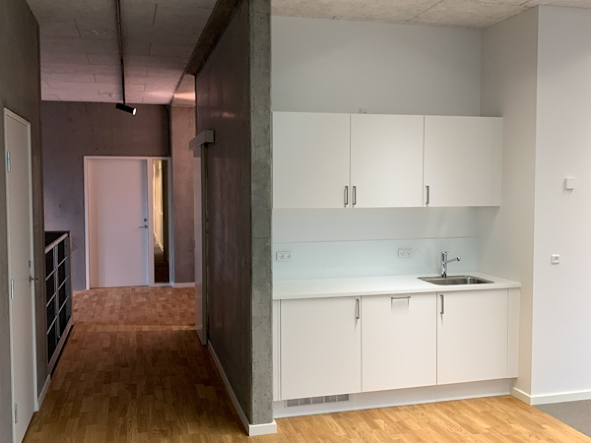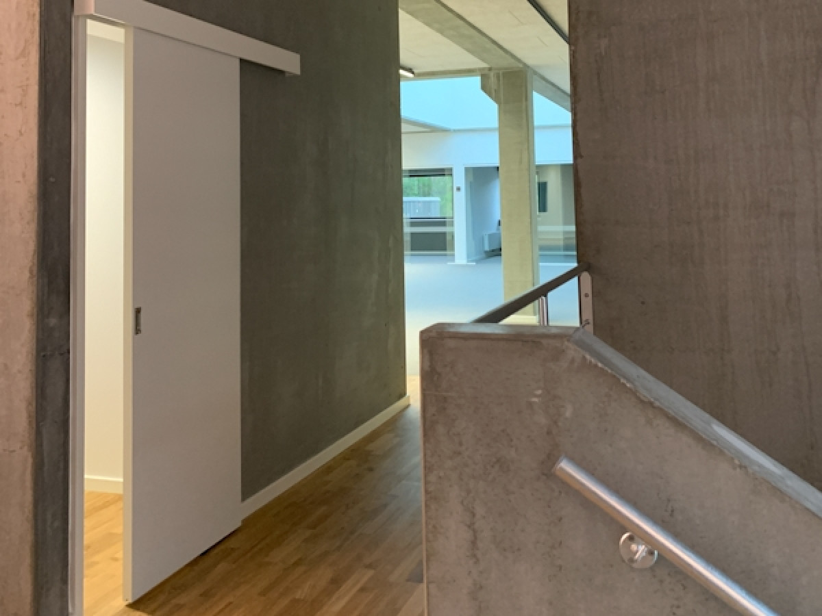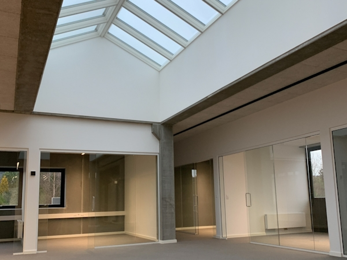 I kontordelen har der været fokus på gennemsigtighed ved brug af eksempelvis indvendige glasskillevægge.