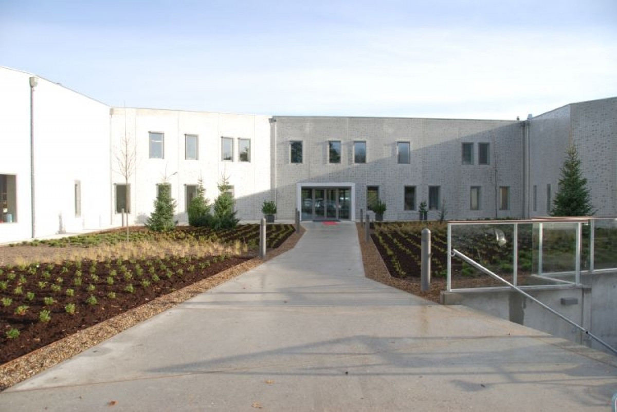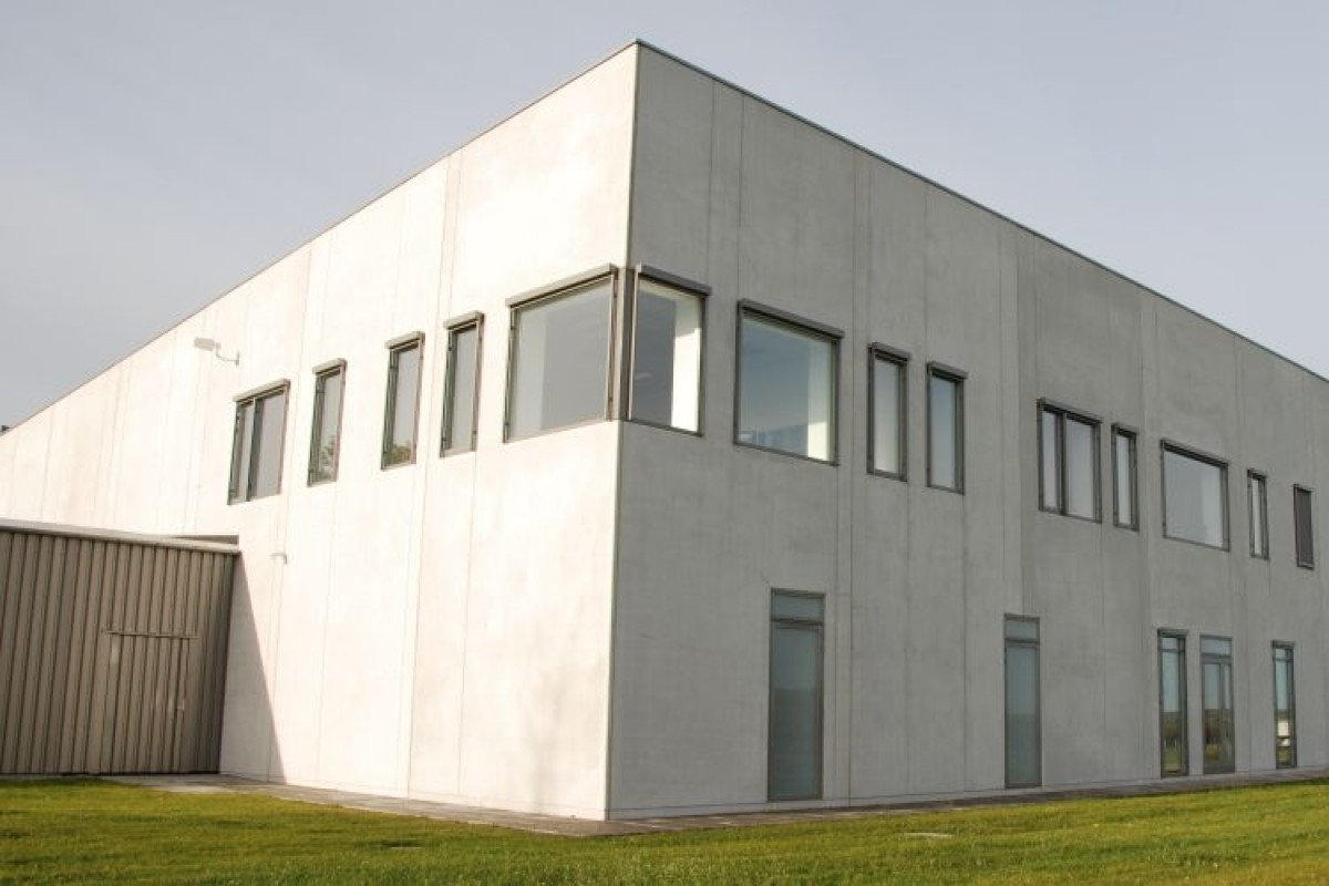 Den 2.500 m2 store bygning omfatter værksteds- og omklædningsfaciliteter, laboratorier, kantine, mødelokaler samt kontorafsnit.