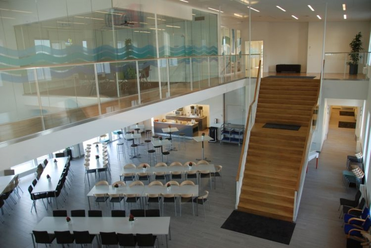 Bygningen er med sin u-form ideelt indrettet således Mariagerfjord Vand sikres optimale driftsbetingelser samt et imødekommende kontorlandskab for både medarbejdere og gæster.