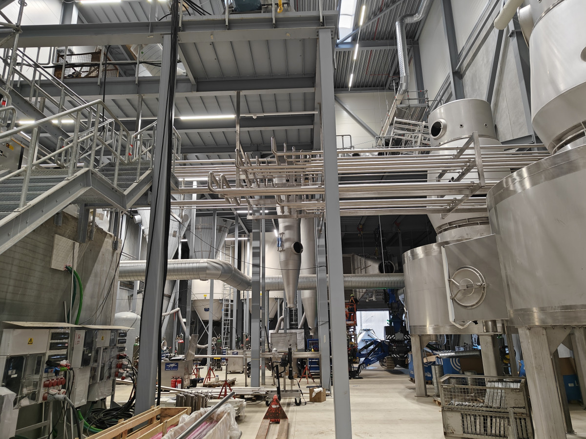 Produktionsfabriken består af administrationsbygning inkl. velfærd, indlevering, vådproces-produktion, tørrerier-/fordamper-afsnit, værksted, kedelrum, opsækning og lager.