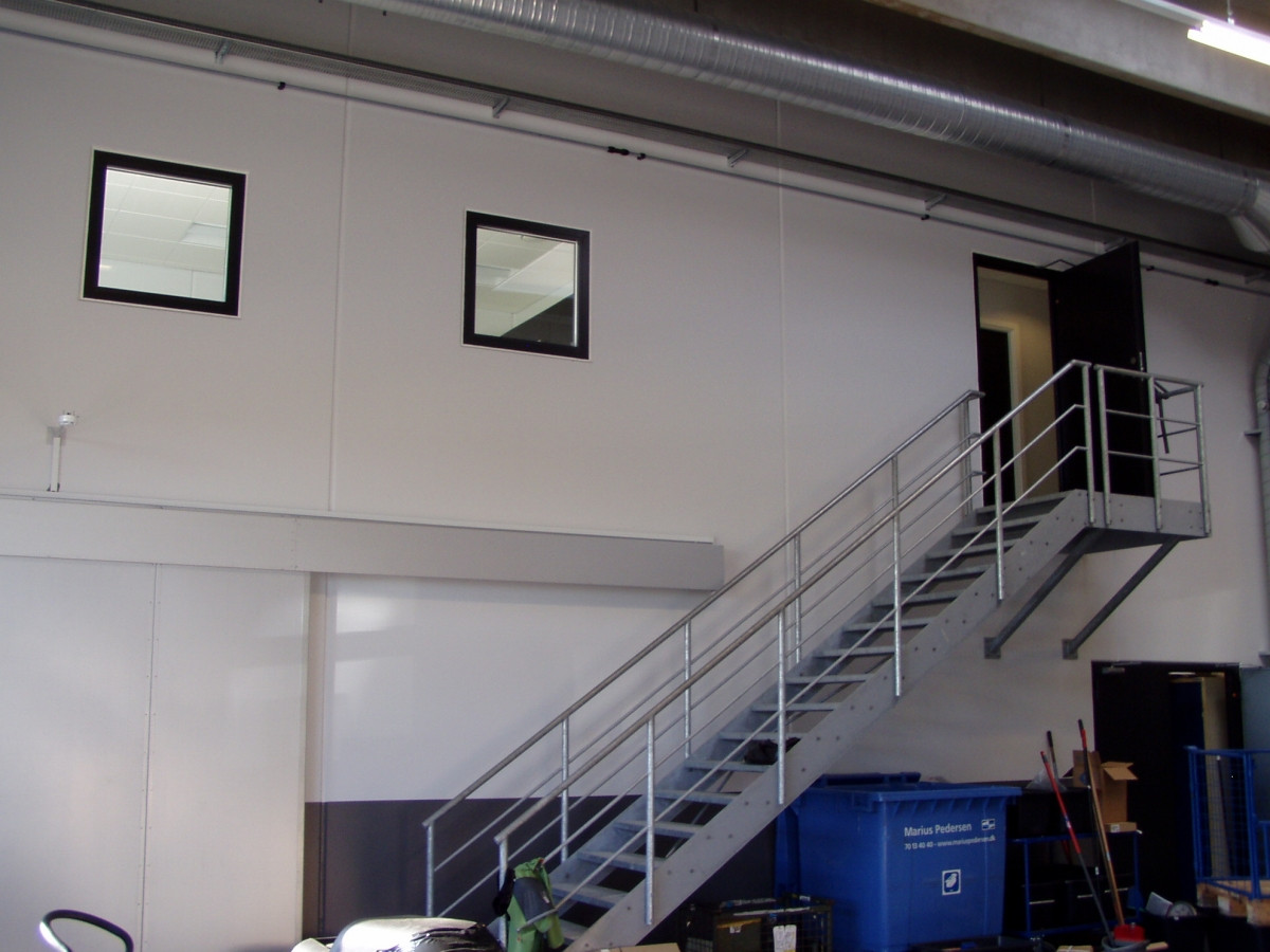 I alt er der et etageareal på ca. 1.440 m2. Indretning af bygningen er sket i tæt samarbejde med Mercari Biler og mht. installationer er der i værkstedsdelen udført trykluftsinstallationer, autogas- og svejseudsugning samt ventilationsanlæg. Udvendigt er der etableret bremsestand.