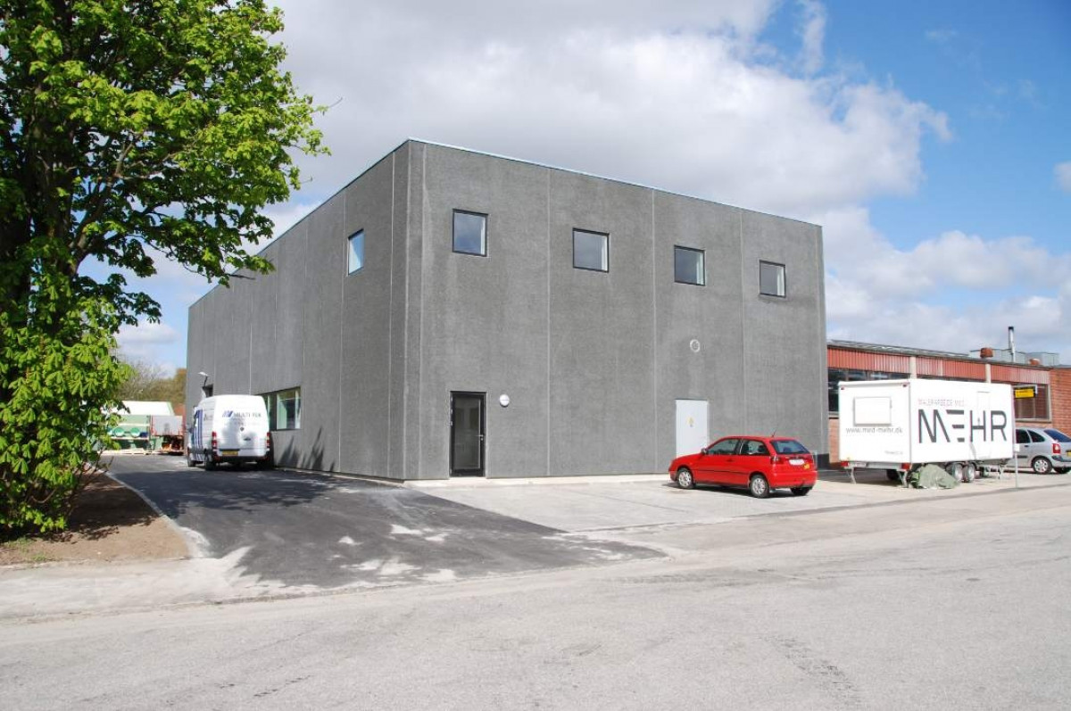 Erhvervsbyggeriet består af en tilbygning i 2 etager indeholdende lager. På 1 sal er der udover lager indrettet labatorium, kontor og toilet.
