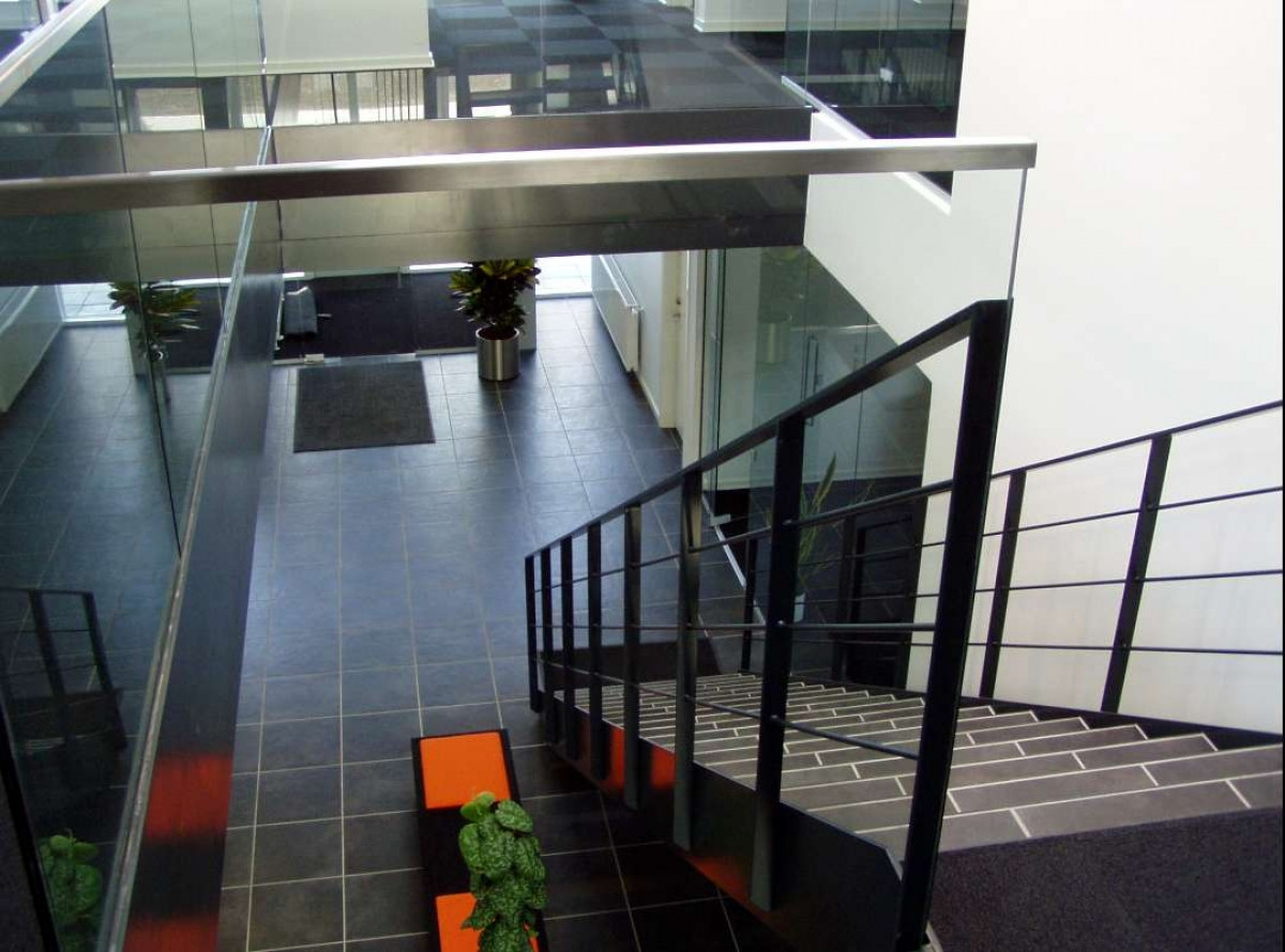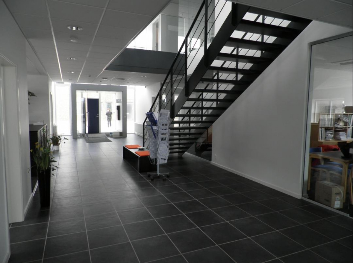 Byggeriet er udført i betonelementer, og facaden er beklædt i alucobond. Administrationen er opført i to etager, som indeholder åben reception og hal, kontorer, prøveværksted, køkken/kantine, mødelokaler og toiletfaciliteter. Kontorerne fremstår meget lyse grundet glasvægge, store vinduesbånd og partier suppleret med ovenlys over den åbne indvendige trappe.